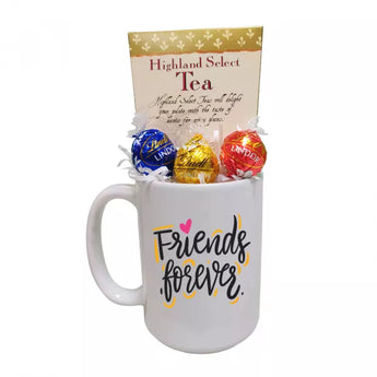Celebrate the joy of friendship with this charming gift set. Perfect for a thoughtful surprise, it includes a delightful "Friends Forever" mug, a selection of Highland Select Tea, and decadent Lindt Lindor truffles to sweeten the moment.