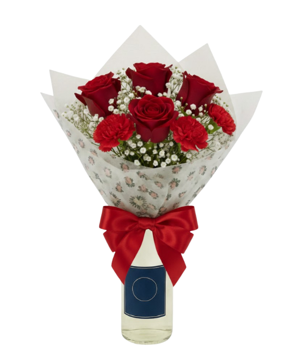 A fresh take on Valentine’s gifting. Wine & Be Mine (White) pairs a bottle of white wine with a hand-designed wrap of valentine's florist’s choice flowers.